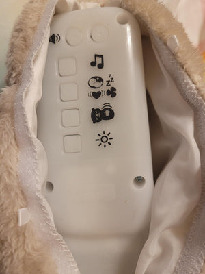 El peluche imita un suave movimiento respiratorio, recreando el ritmo relajante de la respiración de mamá para calmar a tu bebé.